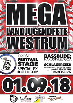 Wir wünschen viel Spass auf der Mega Landjugendfete 2018 in Westrum.